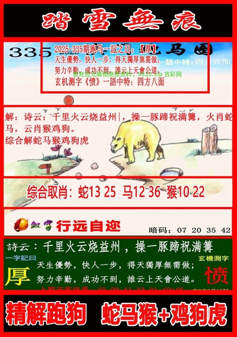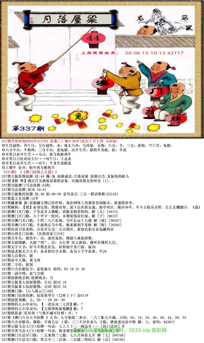 335期【马狗牛蛇猪龙鸡羊鼠】开:狗44准
