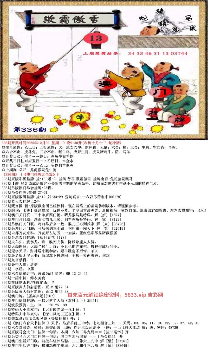 336期【猴鸡马兔鼠牛龙虎猪】开:牛17准