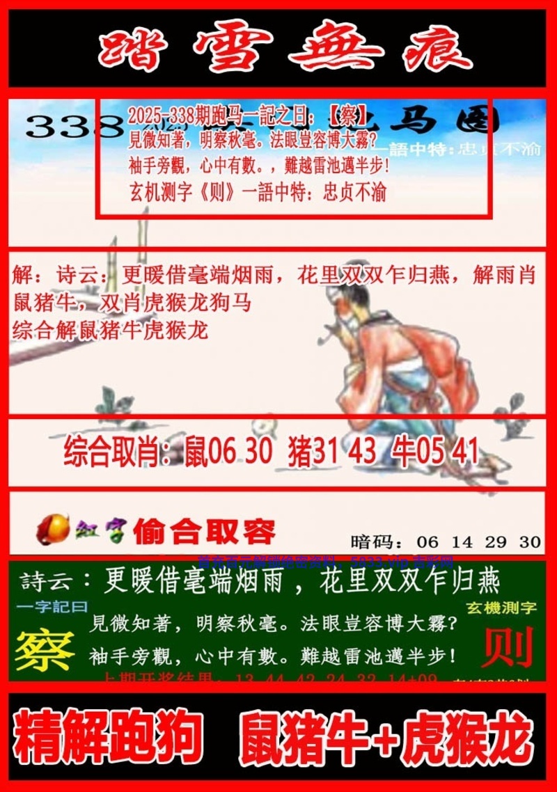 336期今期鼠马猴出特,妒粉尽饶花六六开牛17